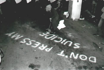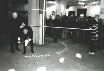 Performance "Black Market International Meeting" 12.9.02, Galerie Clark, Rencontre internationale d´art performance de Quebec 2002, Montreal, Canada.