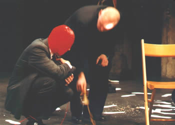 Performance "Black Market International Meeting" 6.12.00, Performancefestival Bone 3, Bern, Switzerland. Photos by Martin Rindlisbacher