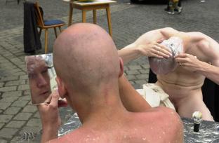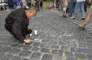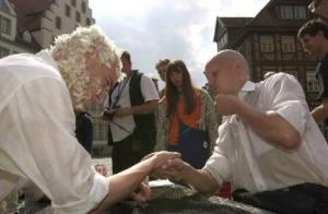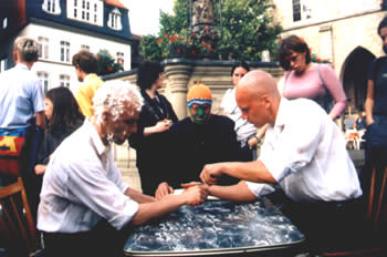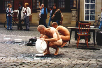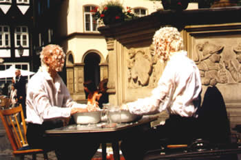 Performance "Encounter" A Performance-Meeting of Black Market International & System HM2T, 8.6.00, Marketplace, Hildesheim, Germany.