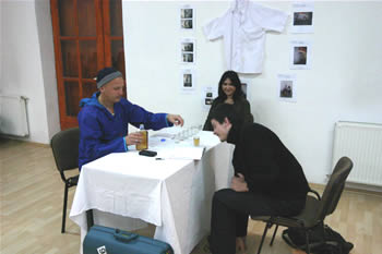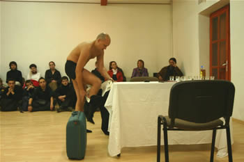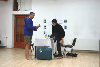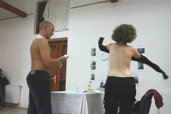 Performance "Hand to Hand in Sf. Gheorghe" 1.10.05, Eruptio 3, Sf. Gheorghe, Rumänien. Photos by Laslo Kovacs.