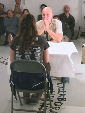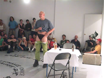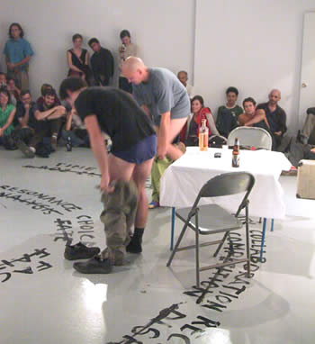 Performance "Hand to hand in Canada" 6.9.02, Rencontre internationale d`art performance de Quebec, Quebec City, Kanada. Photos by Jean Claude Sainte-Hilaire