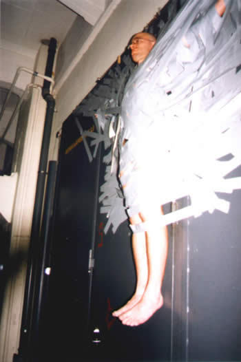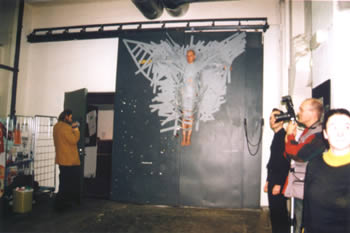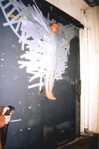 Performance "Let the birds fly" 24.2.01, EXIT Performance festival, Cable Factory, Helsinki, Finland.