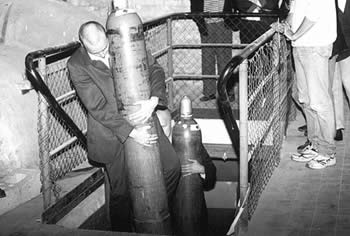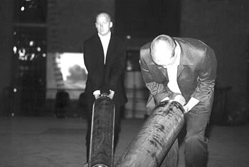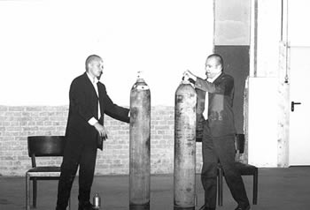 Performance "Un concerto per il gas" 28.6.02, Erster Ilseder Performance Abend, Gebläsehalle in Ilsede, Germany.