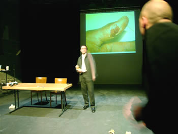 Performance "Hände" 7.12.05, Bone 8, Schlachthaus Theater, Bern, Switzerland. Photos by Martin Rindlisbacher