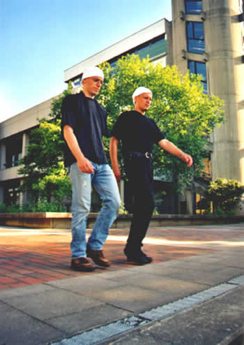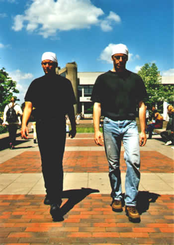 Performance "Walking in the courtyard" Performance No.1 from the performance-series "perform", 7.6.99, University of Hildesheim, Germany.