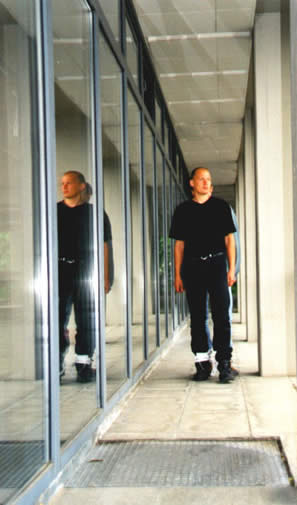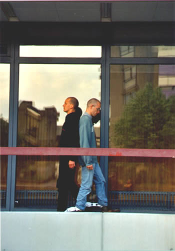 Performance "Walking tied together on the entire area" Performance No.2 from the performance-series "perform", 8.6.99, University of Hildesheim, Germany.