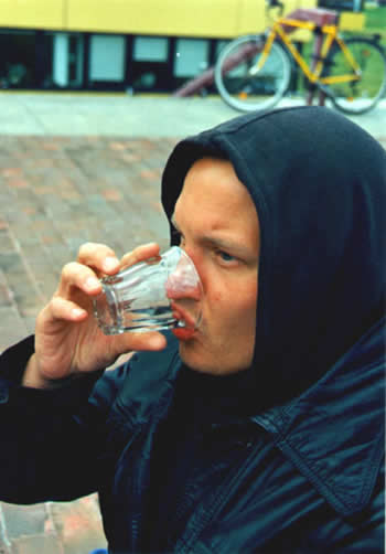 Performance "Drinking water" Performance No.3 from the performance-series "perform", 9.6.99, University of Hildesheim, Germany.